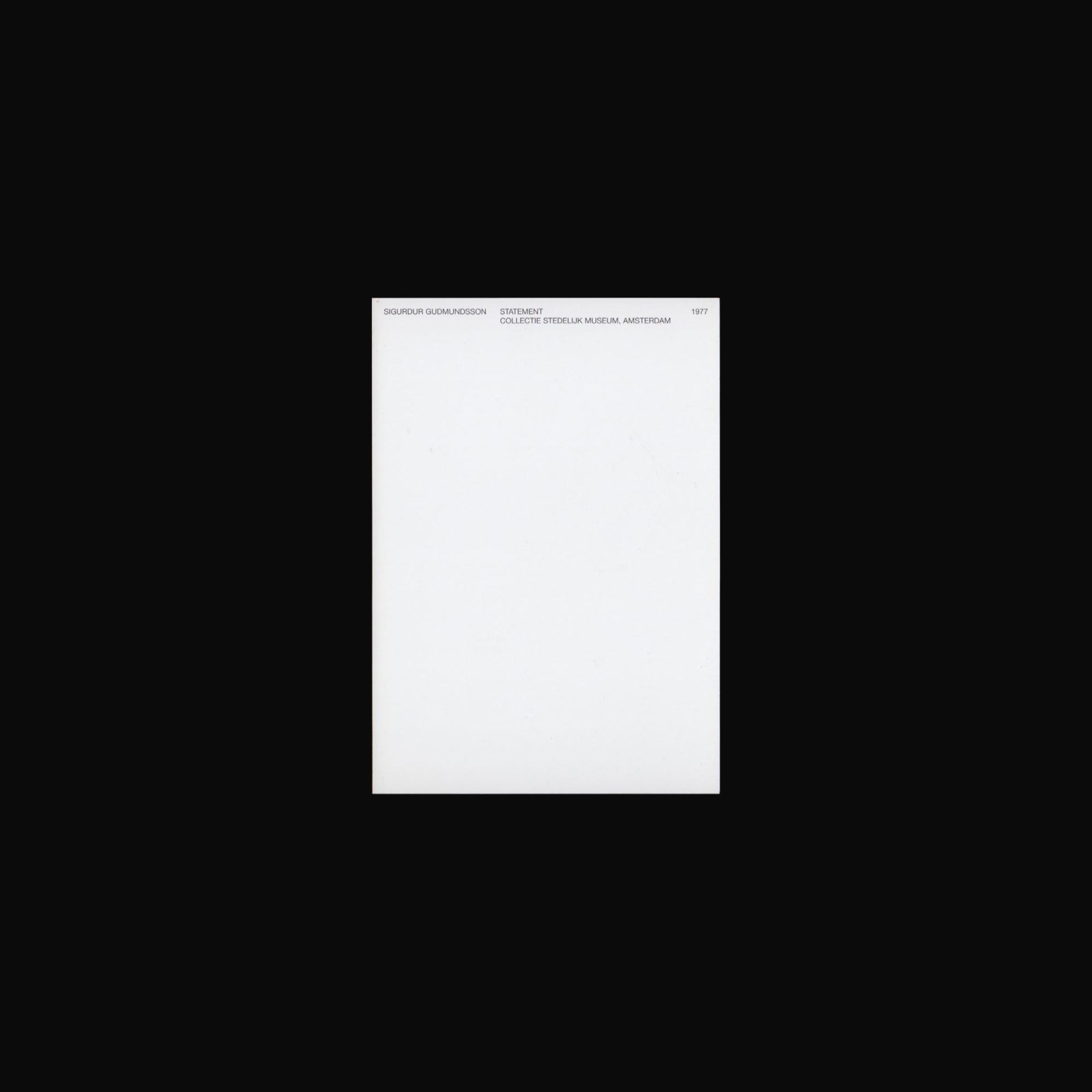 Produced on the occasion of the exhibition Sigurdur Gudmundsson, Recent Werk at Galerie Paul Andriesse, Amsterdam, 9 September–11 October, 1986.